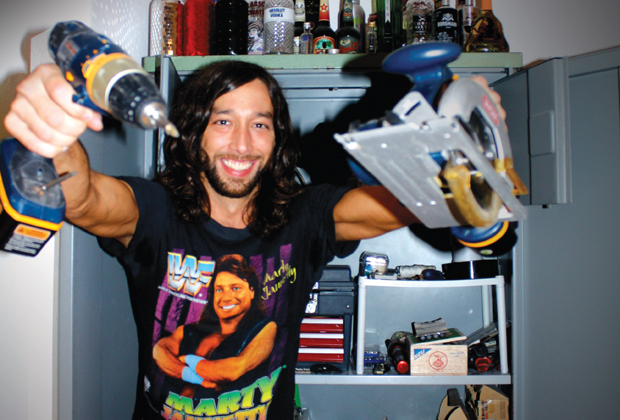 Kalle, a learned electrician, gets up and proudly opens a set of double doors to a narrow, army-green metal storage cabinet, revealing shelves of nuts, bolts, drills, saws, hammers and heaps of other tools that only a Bauhaus floor rep could properly identify.